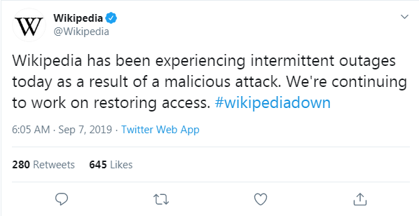 Wikipedia experienced a DDoS attack due to which it was down in the UK and Europe, and a number of places in the middle east on Friday evening.